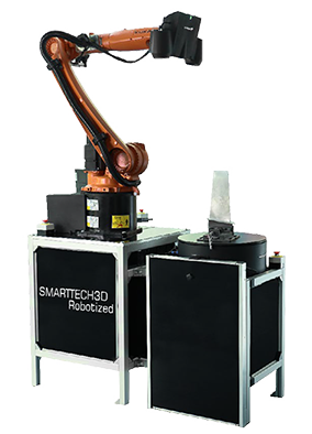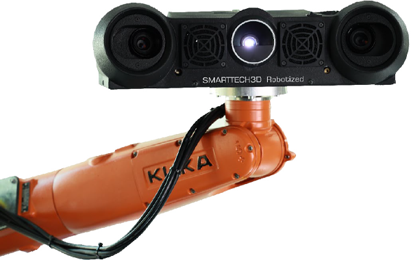 SMARTTECH3D Robotized is available in three models with different working volumes. Each of the models is equipped with a light scanning head with a stereoscopic system of 20 MP resolution cameras, a KUKA robotic arm, workstations, rotary stage, and advanced SMARTTECH3dmeasure software with a robotic module.