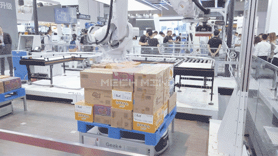 Vision-guided robots can palletize automatically according to the sizes and weights of cases. It also supports mixed-case palletizing of objects.