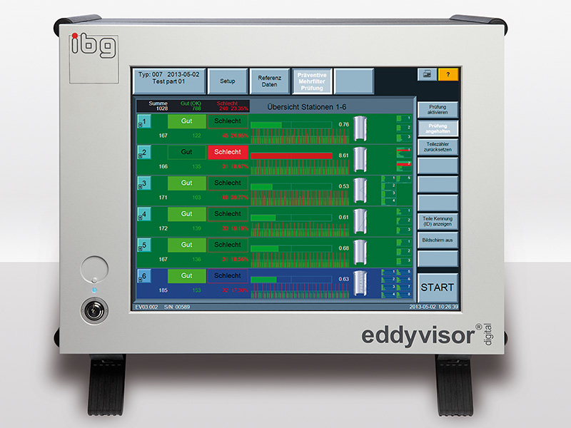 The eddyvisor is based on the long proven ibg system concept. All coils, probes, rotating heads and other system components are standardized worldwide. So eddyvisor is the solution for new tasks and to upgrade existing production machines to equip them with state of the art eddy current technology.