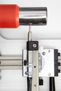 The probe fixture is movable on two lead screws and continuously rotatable with effortless access to different test locations enabling testing of very complex parts. Whether testing an outer circumference with several diameters, the end faces, the recess, teeth or a borehole – all those location can be reached and tested with simple adjustment.
