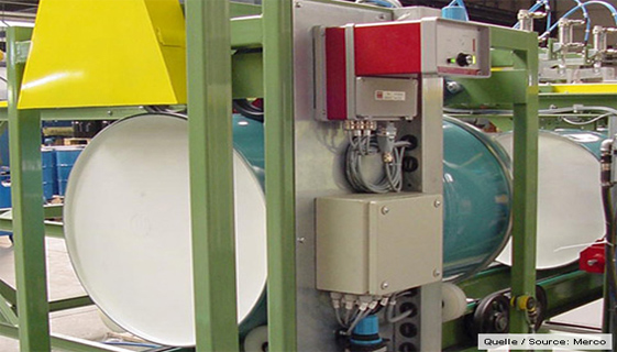 The Weld Seam Detector SND8 and the sensor NS11 find the weld seam for rotating the drum into a safe position.