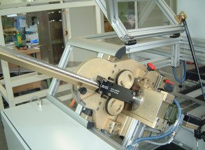 eddyscan H assembled on height adjusteable slide, with an external guidance for the test of round steel bars |