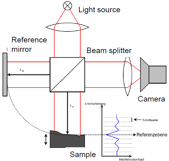 White-light interferometry is among the proven optical measurement techniques for recording 3-D topographies with depth resolution in the lower nanometre range. The measurement points are acquired and processed in parallel, the height information can be gathered over a large area in a very short time.